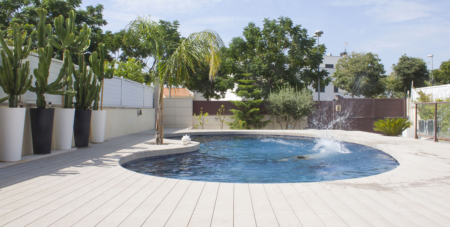 Resulta ideal per instal·lar-la en terrasses amb piscina, degut a que es tracta d’un producte antilliscant i resistent a la humitat i les taques, inclús del clor i d’altres substàncies abrasives.